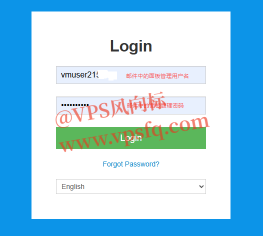 2、打开面板管理网址,输入面板用户名、密码,点击登录。