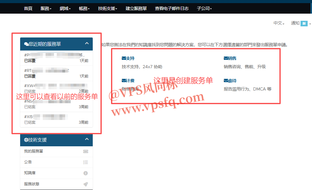 VPS商家的“工单”,也叫“服务单”,是用户向客服提交问题或请求支持的沟通渠道,包括更换IP等服务。