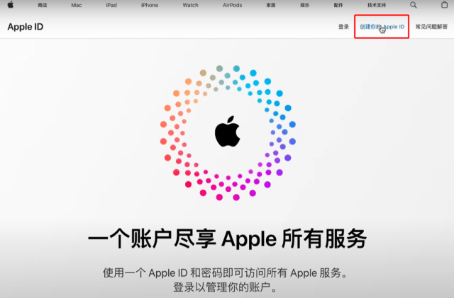 进入 Apple ID 创建页面 访问 https://appleid.apple.com,点击“创建你的 Apple ID”。